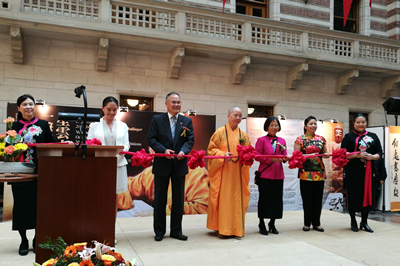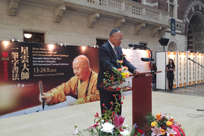 刘大使首先祝贺“星云大师一笔字书法2016世界巡回展”开幕。他在致辞中指出,星云大师是佛教界德高望重的前辈,多年来致力于在全世界推广佛教文化,主张用善意与爱化解仇恨,传播正能量。书法作为中国传统文化的重要元素,糅合了中国人的文化品格与审美情趣,既有行云流水的潇洒,又有遒劲有力、一气呵成的气势。此次展出的书法作品阐释了佛家倡导的善意平和的理念,而文化交流是不同国家人民心与心沟通的桥梁,希望书法展能让更多的丹麦民众接触,激发丹麦朋友对中国文化的更大兴趣,增进对中国文化的了解,进一步加深两国人民之间的情感。