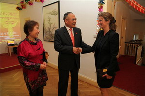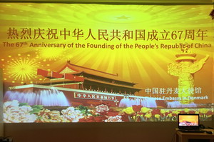 2016年9月22日,中国驻丹麦大使刘碧伟和夫人在使馆举行招待会,热烈庆祝中华人民共和国成立67周年。丹麦政府、议会、政党、经济、科技、文化、教育、军事、媒体等各界友好人士、各国驻丹使节等近250人出席。