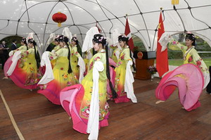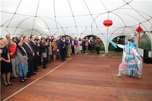 招待会气氛友好热烈,各界来宾高度赞扬中国取得的巨大成就,期待中丹全面战略伙伴关系不断向前发展。来自成都市艺术团的演员们为来宾们奉上了精彩的文艺节目,博得阵阵掌声。