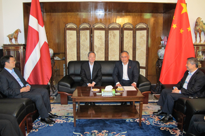 2016年9月26日,驻丹麦大使刘碧伟在官邸会见了正在丹麦访问的国家开发银行刘梅生监事长一行。
