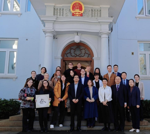 使馆外交官与同学们就彼此感兴趣的话题进行交流,介绍了便利人员往来和便利支付新举措。