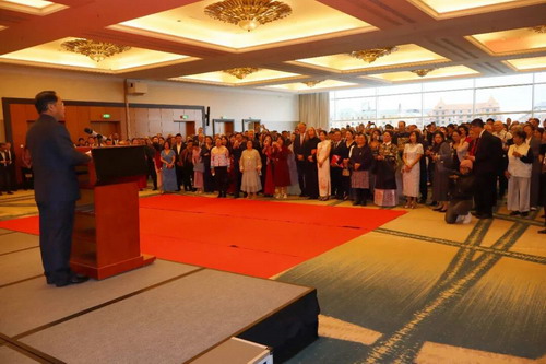 王大使在致辞中回顾了新中国成立76年来取得的伟大历史性成就,积极评价中丹建交75年来友好交流合作的丰硕成果,重点宣介了习近平主席提出的全球治理倡议。