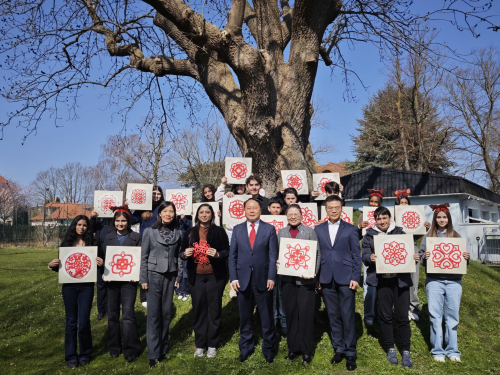 2026年4月17日,驻丹麦使馆为松德国际学校学生举办春节主题开放日活动。驻丹麦大使王雪峰出席并致辞。