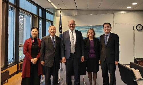 2023年12月13日,驻汉堡总领事丛武赴国际海洋法法庭拜会新任庭长海达尔。法庭书记官长奥亚尔斯在座。