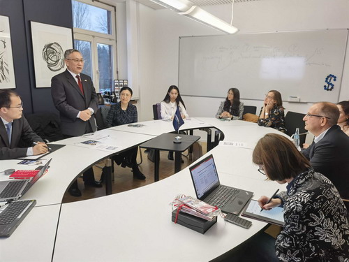2023年12月14日,驻汉堡总领事丛武赴不来梅康斯特大学(原雅各布大学)调研,与校长普罗塔索夫及相关部门负责人座谈交流。