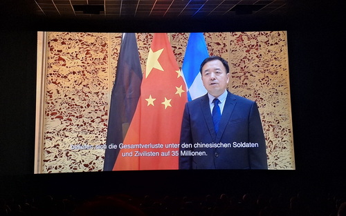 邱学军总领事说,中国人民抗日战争是世界反法西斯战争的东方主战场,为世界反法西斯战争胜利作出重大贡献。中国人民愿同包括德国、欧洲在内的世界各国人民携手护卫和平、反对霸权,在构建人类命运共同体的大道上并肩前行。