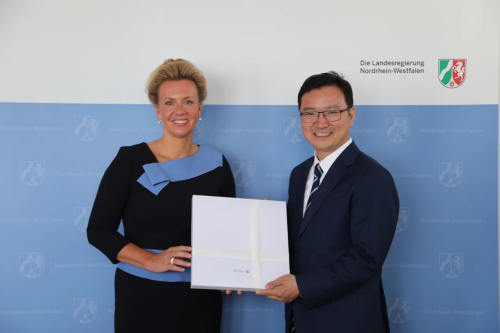 2025年9月5日,驻杜塞尔多夫总领事余勇到任拜会北威州文化科学部长布兰德斯,双方就中国同北威州高等教育、科研与文化领域合作等深入交换意见。