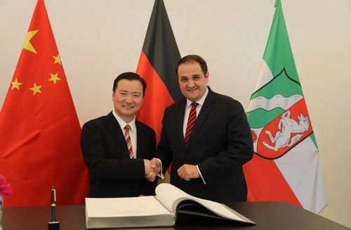 2025年10月2日,驻杜塞尔多夫总领事余勇拜会北威州政府办公厅主任兼联邦、欧洲、国际及新闻事务部部长黎敏斯基。