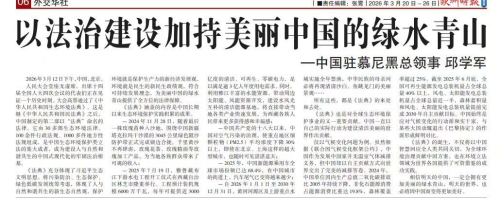 《法典》也是对全球生态环境保护事业的又一重要贡献。中国一直以自己的实际行动为建设清洁美丽的世界作出贡献。仅以气候变化问题为例。虽然根据《联合国气候变化框架公约》,中国作为发展中国家并无温室气体减排义务,但中国却以自主贡献方式向世界交出了完美的减排答卷。2024年,中国单位国内生产总值二氧化碳排放比2005年持续下降,非化石能源消费占能源消费比重达19.8%,森林覆盖率超过25%。截至2025年6月底,全国可再生能源发电总装机量占全球总量40%以上,风电、太阳能发电总装机量占全球总量近一半,森林蓄积量和风电、太阳能发电总装机量提前完成2030年自主贡献目标。中国始终是应对气候变化的行动派和实干家,与某些大国动辄退出《巴黎协定》的作派形成鲜明对比。《法典》的诞生,不仅将以中国智慧回应全人类共同关切,为全球环境治理贡献中国方案,也在环境立法领域为世界各国提供了可资借鉴的成功实践。