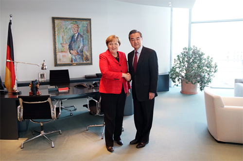 默克尔首先请王毅转达她对习近平主席和李克强总理的亲切问候。王毅也转达了习近平主席和李克强总理对默克尔总理的良好祝愿。