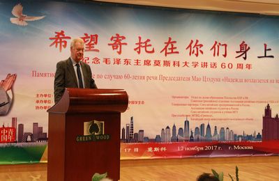 2017年11月17日,由驻俄罗斯使馆和欧美同学会留苏(俄)分会共同主办的毛泽东主席“希望寄托在你们身上”讲话发表60周年纪念活动在莫斯科格林伍德贸易中心举行。驻俄罗斯大使李辉,俄中友协第一副主席库利科娃,俄高校毕业生联合会会长达布罗沃林斯基,欧美同学会留苏(俄)分会副会长、俄罗斯中国总商会会长周立群出席并致辞。欧美同学会留苏(俄)分会、俄罗斯中国总商会、中俄友协、留俄学生总会、莫斯科国立大学中国学生会等华侨华人社团,以及中俄教育界、企业界人士,留俄学生和两国媒体代表约200人出席。