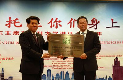 活动期间,李辉大使代表中国团中央向莫斯科格林伍德国际贸易中心设立的“中国国际青年交流中心俄罗斯工作站”授牌。该中心将不仅致力于为中俄两国经贸合作牵线搭桥,同时也为留俄学生提供实习和就业的平台。