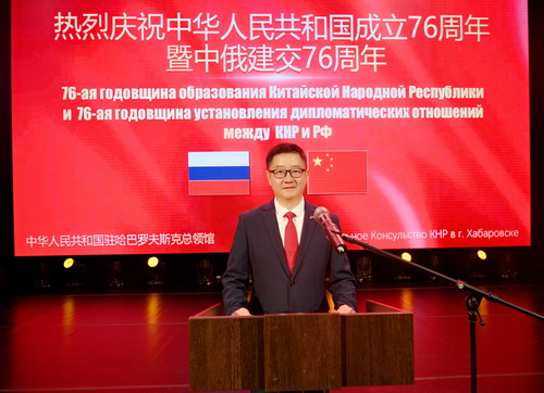 2025年9月16日,驻哈巴罗夫斯克总领馆举办国庆暨中俄建交76周年招待会。驻哈巴罗夫斯克总领事姜笑洋,哈巴罗夫斯克边疆区政府第一副主席阿布拉莫夫、副主席阿维洛娃,萨哈(雅库特)共和国副主席鲍里索夫、巴拉布金娜,犹太自治州副州长贝奇科夫,外交代表西拉耶夫,哈巴市长克拉夫丘克及领区各界友好人士近500人出席。