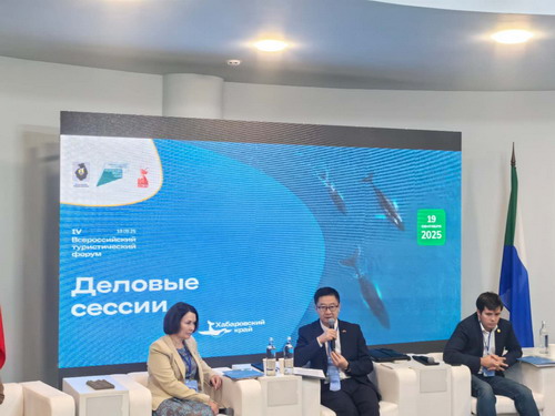 2025年9月19日,第四届“探索远东”全俄旅游论坛在哈巴罗夫斯克举行。驻哈巴罗夫斯克总领事姜笑洋应邀出席论坛全会并致辞。