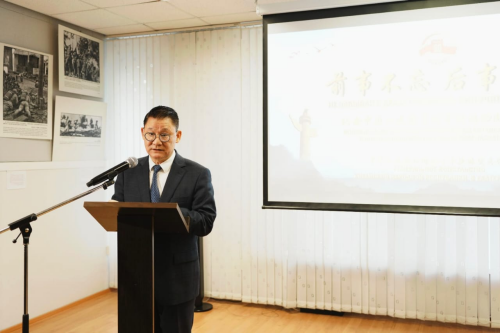 罗世雄总领事强调,举办图片展旨在铭记历史、缅怀先烈、珍视和平、开创未来,弘扬中国人民伟大抗战精神,赓续中俄两国人民传统友谊,驳斥日本国内妄图篡改二战历史的修正主义叙事,指出中俄两国要继续坚持正确二战史观,维护二战胜利成果和战后国际秩序。