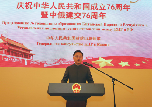 2025年9月26日,驻喀山总领事向波举办庆祝中华人民共和国成立76周年暨中俄建交76周年招待会。乌里扬诺夫斯克州州长鲁斯基赫视频致辞,鞑靼斯坦国务委员会副主席卡马尔特诺夫、奔萨州第一副州长谢金,领区各界人士,以及领区中资机构、华侨华商、留学生代表等出席。