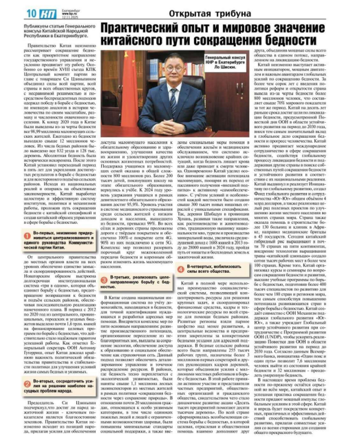 2025年11月18日,驻叶卡捷琳堡总领事罗世雄在《共青团真理报》发表署名文章《中国特色减贫道路的实践经验和世界意义》。全文如下: