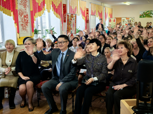 2026年1月9日,驻哈巴罗夫斯克总领事姜笑洋出席哈巴罗夫斯克市东方语言第四中学汉语普及项目开营式。哈巴市教育局局长马特韦延科娃、对外友协会长罗伊特曼、哈巴四中校长卡布津科以及当地多所中小学、幼儿园近百名师生参加。