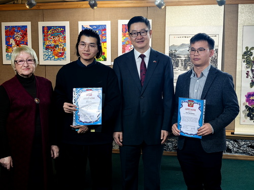 姜总领事在致辞中表示,春节是团员与春天的象征,而俄罗斯文化同样崇尚美好与希望。今天,一幅幅稚嫩却真挚的作品,不仅展现了两国青少年对美的感知,更承载着中俄世代友好的美好愿景。希望两国青少年以艺术作笔、以文化为彩,共同谱绘中俄文明互鉴、民心相通的绮丽画卷。
