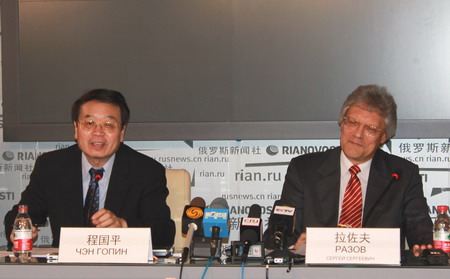 2012年5月29日,外交部副部长程国平与俄罗斯驻华大使拉佐夫在北京新闻大厦就俄罗斯总统普京访华共同举行吹风会。
