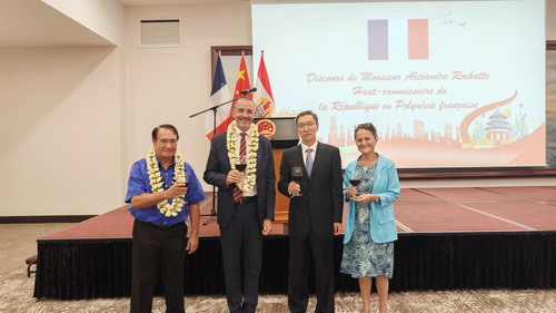 2025年9月18日,驻帕皮提领事馆举行庆祝中华人民共和国成立76周年招待会,驻帕皮提领事馆馆长领事田立晓、法国驻法属波利尼西亚高级专员罗夏特、法波议长杰罗斯、法波主席代表、劳动部长克罗拉斯分别致辞,五位部长及部际代表、法波前主席等当地政要及其他各界代表约300人出席。