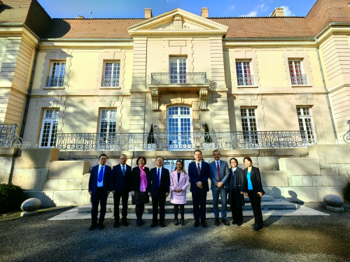 2025年10月28日,驻里昂总领事于江出席云南财经大学和法国排名第一的瓦岱勒国际酒店与旅游管理商学院工作交流会。云南财经大学党委书记陈红、瓦岱勒集团董事长塞班等出席。