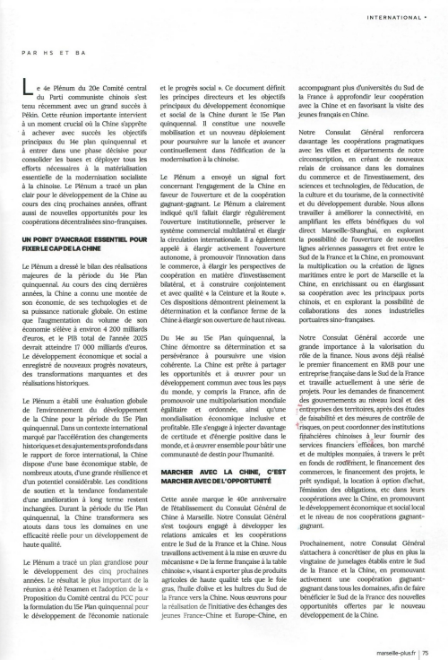 2026年1月19日,驻马赛总领事何有麟在南法主流媒体《马赛+》《艾克斯+》杂志新年首刊发表封面文章《中国新发展的南法新机遇》。何总领事并被作为本期杂志封面人物。全文如下: