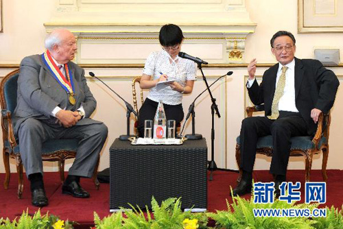 当地时间13日下午,正在法国进行正式友好访问的中国全国人大常委会委员长吴邦国在市政府会见了法国参议院副议长、马赛市市长戈丹。