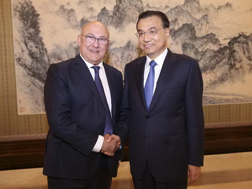 2015年9月18日下午,国务院总理李克强在中南海紫光阁会见来华出席第三次中法高级别经济财金对话的法国财长萨班。