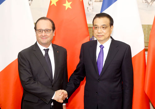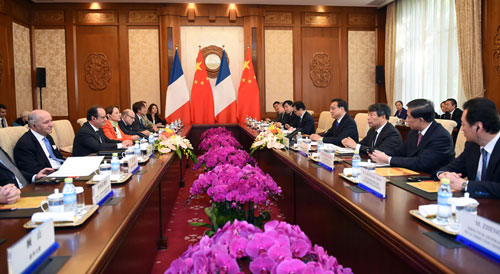 2015年11月3日中午,国务院总理李克强在钓鱼台国宾馆会见来华进行国事访问的法国总统奥朗德。