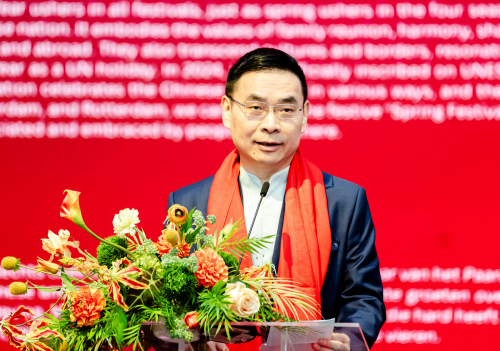 2026年2月14日,驻荷兰大使申博出席在海牙市政厅举办的2026年荷兰各界庆祝马年新春活动。海牙市长范扎能及荷外交部官员、各国驻荷使节及侨界代表等近千人出席。