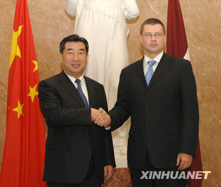 2009年8月31日,国务院副总理回良玉在里加同拉脱维亚总理东布罗夫斯基斯举行会谈。