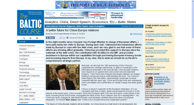 2012年11月6日,拉脱维亚电子媒体《THE BALTIC COURSE》全文发表了中国外交部副部长宋涛署名文章——《为了中欧关系的美好未来》。