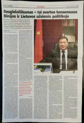2021年2月4日,驻立陶宛大使申知非在立主流媒体《立陶宛晨报》发表题为《多边主义是中立外交政策的最大共识》的署名文章。全文如下: