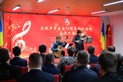 2024年11月14日,“友谊之音”——庆祝中罗建交75周年音乐会在布加勒斯特中国文化中心举办。驻罗马尼亚大使韩春霖、罗中商务中心主席波卡依出席并致辞。
