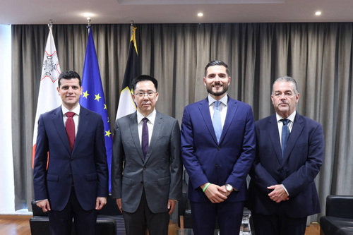 2025年11月11日,驻马耳他大使张佐在马国民党总部会见该党领袖、议会反对党领袖博奇。影阁外长阿达米、该党国际书记加雷亚出席。