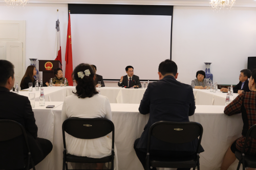 2025年11月18日,驻马耳他使馆举办党的二十届四中全会精神宣介会,驻马耳他大使张佐作主旨宣讲,在马华侨华人、中资机构代表约30人出席。