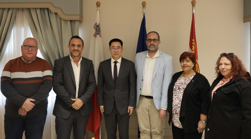 2025年11月27日,驻马耳他大使张佐会见保拉市长西尔维奥,市政委员会委员卡鲁阿纳、皮奇尼诺、阿塔德及行政秘书米兹参加。