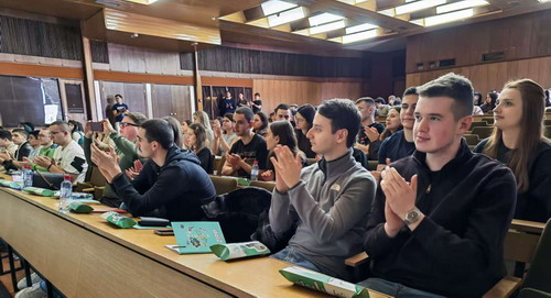 2026年2月28日,圣基里尔—麦托迪大学学生会在克鲁舍沃举办中国主题专场活动——"熊猫行动"团队合作工作坊,驻北马其顿大使蒋小燕出席并致辞。该校80余名学生参加。
