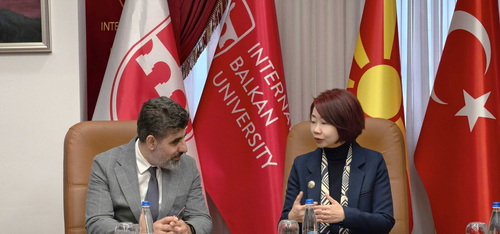 2026年3月31日,驻北马其顿大使蒋小燕访问国际巴尔干大学,会见校长苏纳尔,并参观生命科学研究院、生物实验室、媒体演播室、图书馆等。