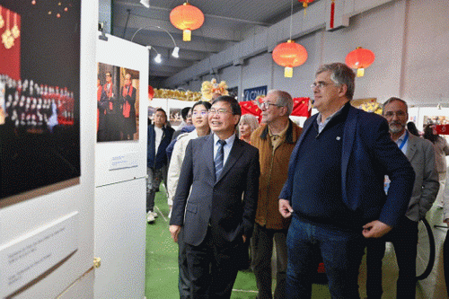 在开幕式上,驻葡萄牙大使赵本堂和塞沙尔市长席尔瓦共同为龙头点睛。活动现场,赵本堂大使与席尔瓦市长参观了“中葡建交45周年”图片展,观看了中国传统舞龙表演,传统舞蹈和古筝表演,品鉴了中国茶。