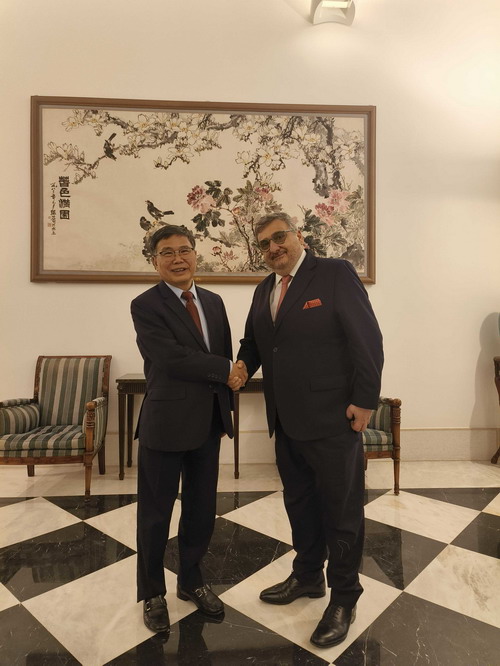 2024年4月17日,驻葡萄牙大使赵本堂会见葡执政党社民党国际书记费雷拉一行。