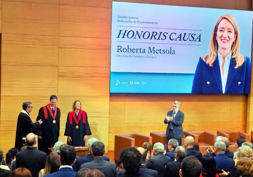 2024年4月19日, 驻葡萄牙大使赵本堂应邀出席欧洲议会主席罗伯塔·梅索拉获里斯本大学社会与政治高级科学学院国际关系荣誉博士学位授予仪式。葡萄牙国务部长兼外交部长保罗·兰热尔、环境和能源部长玛丽亚·卡瓦略、农业和渔业部长若泽·费尔南德斯、里斯本市市长卡洛斯·莫埃达斯等出席活动。