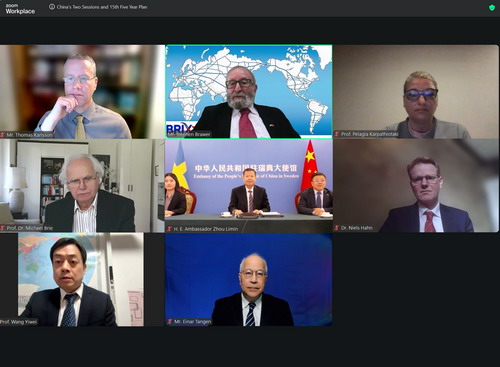 2026年4月8日,驻瑞典大使周立民出席瑞“一带一路”研究所举办的“中国两会与‘十五五’规划——一扇为人类开启新机遇的大门”网络研讨会并致辞。来自瑞典、德国、丹麦、希腊、加拿大等国近20名专家与会。