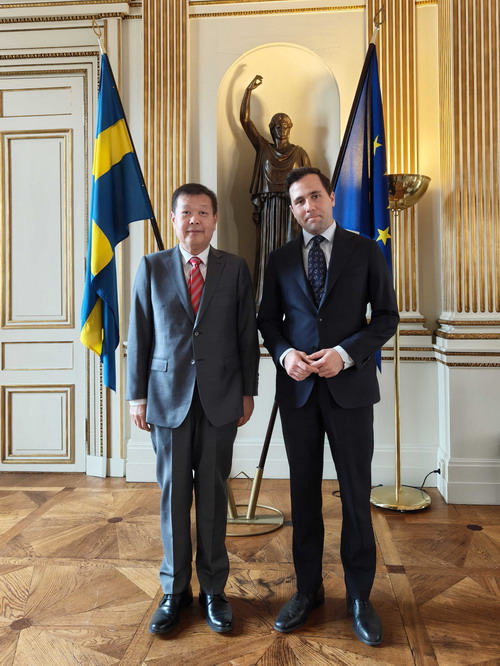 2026年4月22日,驻瑞典大使周立民到任拜会瑞典对外援助与外贸大臣杜萨,双方就深化中瑞经贸合作交换意见。