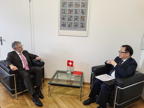 2025年9月26日,驻瑞士大使钱敏坚拜会瑞士联邦主席外事顾问皮杜。