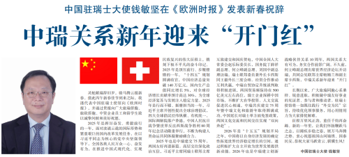 2026年是“十五五”规划开局之年,中国将以自身经济发展的确定性拓宽世界经济稳定增长的空间,通过积极扩大自主开放为世界发展提供新动能。2026年也是中瑞建立创新战略伙伴关系10周年,两国关系大有可为,务实合作前景广阔。不久前,何立峰副总理出席世界经济论坛并访瑞,共同会见联邦主席帕姆兰和副主席卡西斯,中瑞关系新年迎来“开门红”。