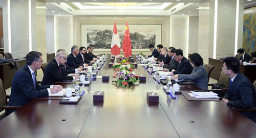 2016年1月15日,外交部长王毅在北京与来访的瑞士联邦委员兼外长布尔克哈尔特举行政治磋商。