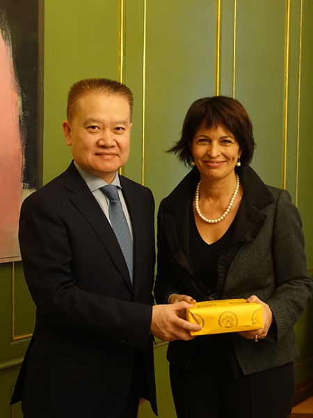 2017年1月10日,外交部部长助理刘海星在伯尔尼会见瑞士联邦主席洛伊特哈德,双方就中瑞关系和习近平主席访瑞交换了意见。洛表示,瑞方热切期待习近平主席即将对瑞士进行国事访问,相信此访将有力推动瑞中创新战略伙伴关系。