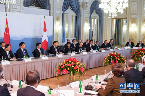习近平在致辞中指出,中瑞建交67年来,两国关系全面深入发展,尤其在经贸领域合作成果丰硕。瑞士企业家凭借勇于开拓创新、追求卓越完美的精神,在同中国的合作中总能抢占先机,并获得丰厚回报。中瑞签订并实施自由贸易协定对中瑞经贸投资合作发挥了积极提振作用。我这次访问瑞士期间双方签署的多项合作协议,将给中瑞经贸合作带来新机遇,增添新动力。